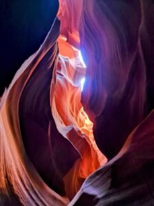 Vanuit Page kun je met Navajo Tours naar de Upper Antelope Canyon. Deze trip kun je niet zelfstandig maken aangezien het land in bezit is van de Navajo Nation (Indianen). Met een truck word je via een zanderige weg naar de ingang gebracht. Eénmaal in de kloof zijn de kleuren overweldigend. Je waant je echt in een schilderij. Elke foto die je maakt zal prachtig zijn.