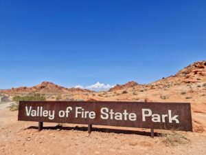 Vanuit Zion kun je ervoor kiezen om via Valley of Fire naar Las Vegas te rijden. Het is een kleine omweg die zeker de moeite waard is. Dit State Park in de Mojave woestijn staat bekend om zijn rode rotsformaties in bogen en vormen. Voorbeelden zijn: Elephant Rock, Beehive Rock en Arch Rock.