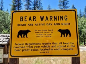 • Pas op voor de beren: in de National Parks. Laat niks in de auto liggen, beren hebben een hele goede neus. Restjes eten en zonnebrandcrème ruikt al als een heerlijk hapje. Er zijn berenkluizen beschikbaar bij veel parkeerplaatsen, maar je kan ook alleen je benodigde drinken en etenswaar in de koelrugzak meenemen.