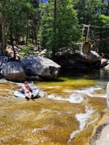 De Yosemite de Mist Trail is een wandeling van zo’n 4 km retour Let op want soms zijn er omleidingen in verband met werkzaamheden aan de trappen waardoor de route kan oplopen tot 12 km. De ultieme beloning is de Vernal Fall waar je even kunt bijkomen en kunt pootjebaden. Yosemite Falls is heel eenvoudig te bereiken via een verhard pad. Daar zagen we overigens ineens een beer voorbij wandelen! Bij Wawona Swinging Bridge kun je lekker zwemmen en met een tube (zelf meenemen) van de rotsen glijden. Een leuke en verrassende spot!